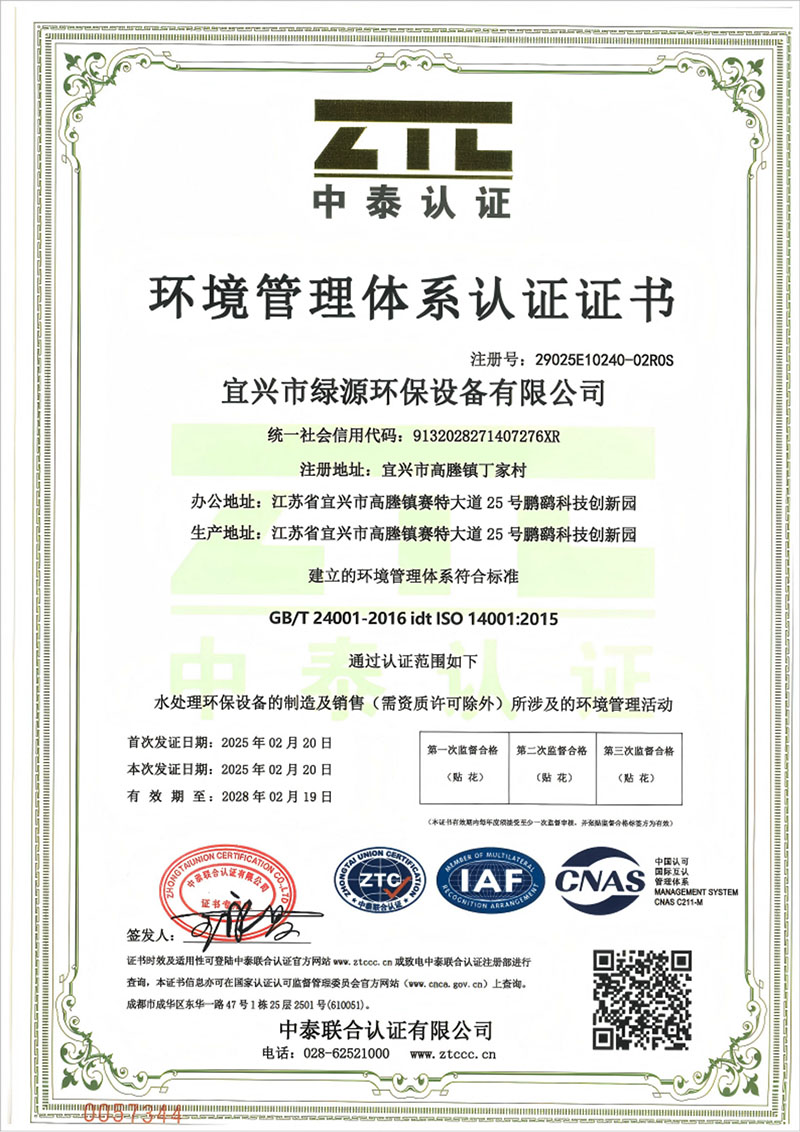 環境管理體係認證證書-中文(wén)